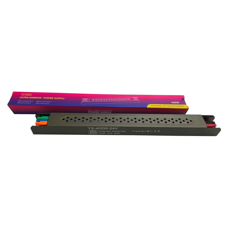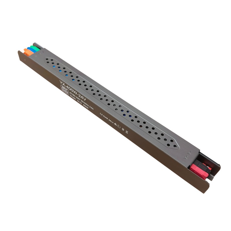 1.Guangzhou Yuxiang High-Quality 24V400W LED Ultra-Fine Linear Semi-Gel Power Supply features a high-density aluminum alloy casing and premium high-current push-button terminals for quick installation. With dual-level dimming via rotary dial, it offers enhanced user convenience.