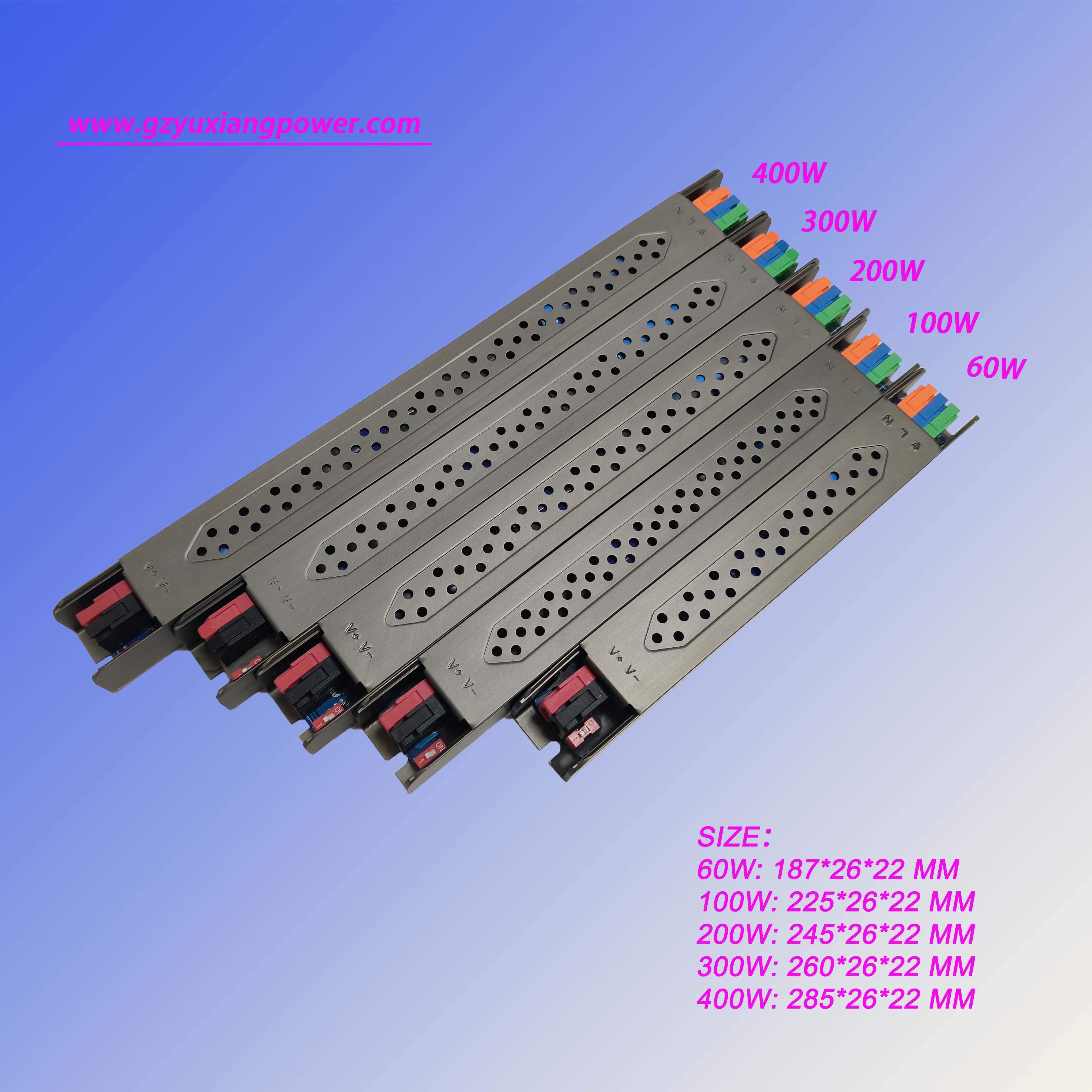 4. This ultra-narrow adjustable LED power supply offers power ratings including 60W,100W,200W, and 400W, catering to diverse power requirements from compact spaces to large-scale projects.